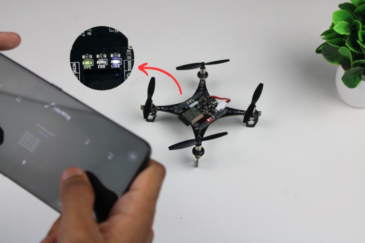 The drone initializes as expected and SYS LED blinks. However, when I press the Connect button, the blue LED blinks briefly, and the system re-enters the initialization loop. Sometimes this cycle repeats three times, after which the app loses its Wi-Fi connection.