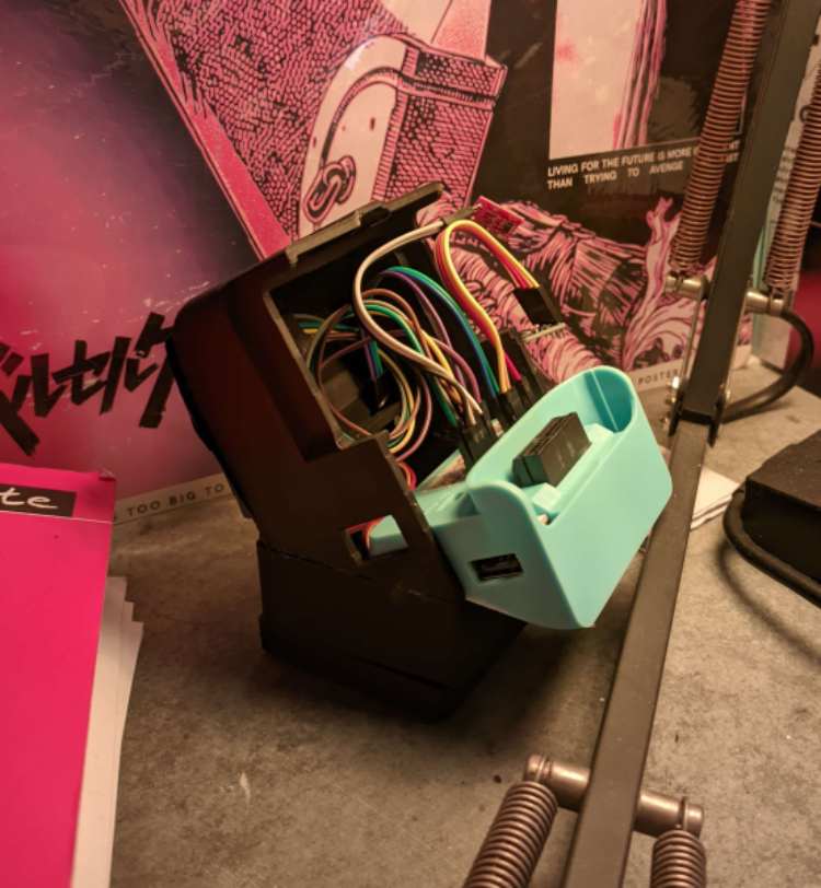 Connect the signal pin to GPIO 38. Connect the power pin to a 3.3V pin on the dock and the ground pin to a GND pin. Stick/place it near the top of top.stl.