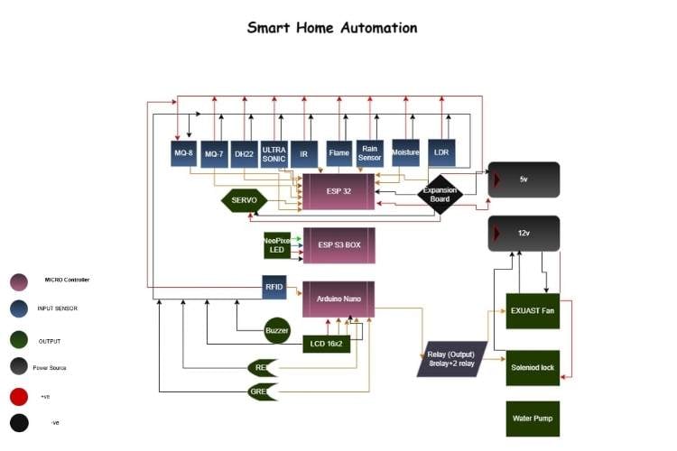 Common Ground: Ensure the ground (GND) of the Relay module, MQ sensors, and Servo are all connected back to the ESP32 GND. Without a shared ground, the signals will be "noisy" or won't work at all.