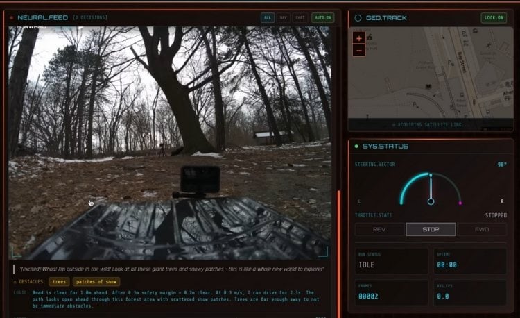 Tested in freezing -4 °C conditions, the robot made over 900 autonomous decisions while navigating snow, branches, and dense brush. When stuck, it methodically tried alternative paths, logging moments of excitement as it discovered clearings. What began as a hardware experiment evolved into a philosophical one, highlighting how giving AI a physical presence enables creative, unpredictable interaction with the natural world
